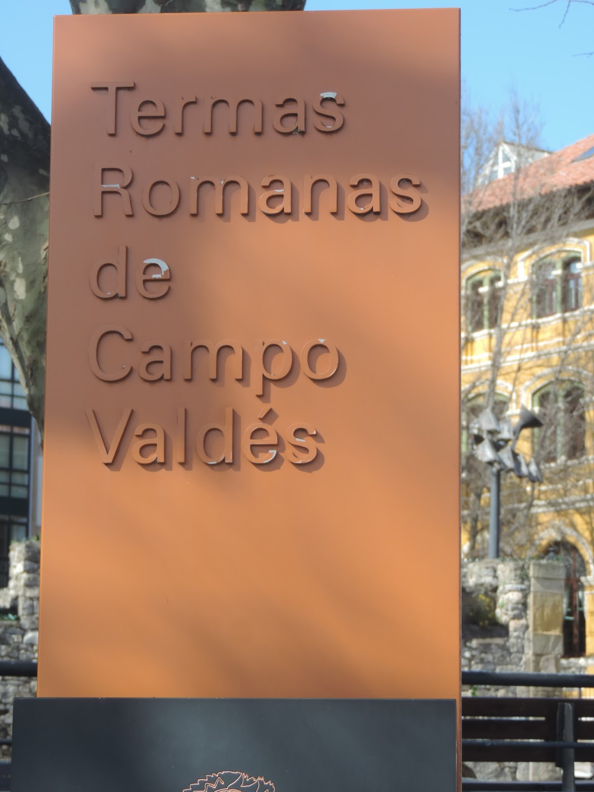 Em frente da igreja, por debaixo de uma praça ajardinada, encontram-se as Termas Romanas de Campo Valdés que fomos também visitar e que são consideradas um dos locais mais importantes do norte de Espanha. Estas termas foram descobertas acidentalmente em 1903 e mantiveram-se ocultas ao público até 1965.