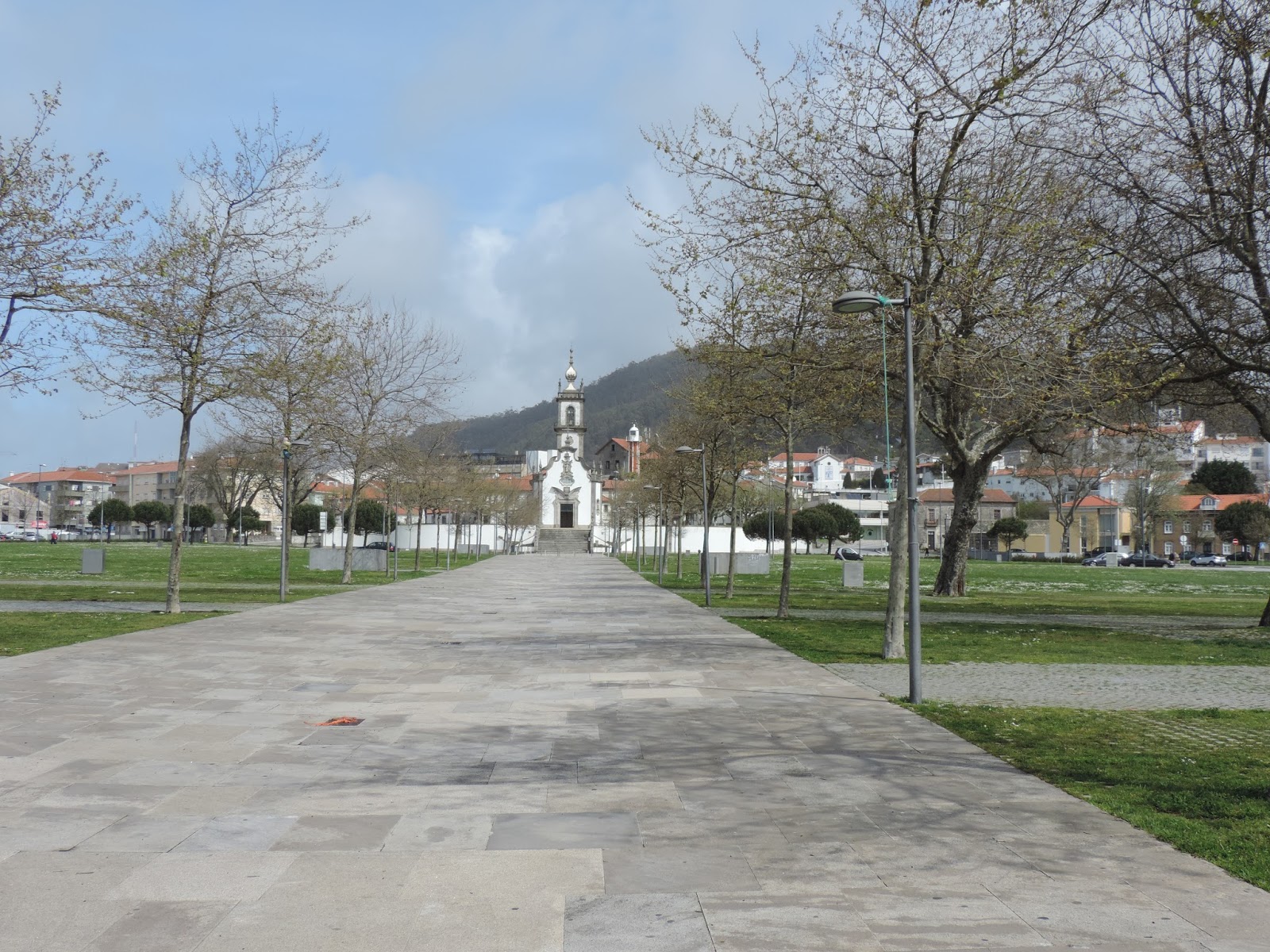 Saímos do parque de campismo, atravessámos a Ponte Eiffel e fomos estacionar próximo da Capela de Nossa Senhora da Agonia.
