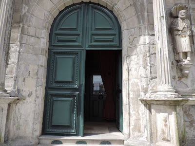 À saída admirámos a beleza da porta lateral, encimada por um conjunto de esculturas.
