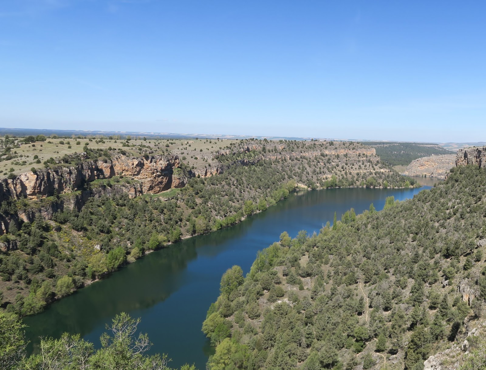 Hoje já me sentia melhor e saímos do camping. Fomos até ao Parque Natural de las Hoces del Rio Duratón (gargantas), que distava poucos quilómetros. Este Parque Natural destaca-se pela sua riqueza arqueológica e histórica aliada à sua beleza natural, onde as águas do rio Duratón escavaram profundas gargantas. Estacionámos e fomos fazer uma caminhada seguindo por um caminho indicado como sendo "Senda de los Rios".
