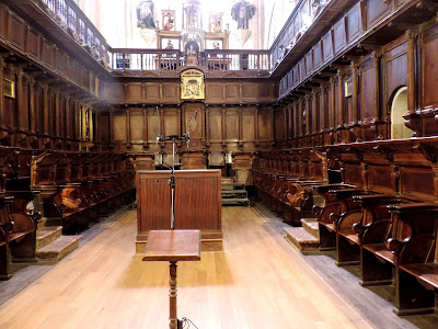 Ao centro da nave temos o Coro, construído no século XVI em madeira de nogueira o qual conta com 71 lugares.