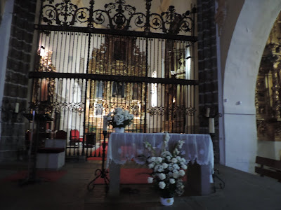 Quando chegámos, a Ermida e a zona envolvente estavam em obras, mas um dos senhores veio abrir a Ermida para nós podermos ver. Tem uma cabeceira com três absides e na central encontra-se o Presbitério.