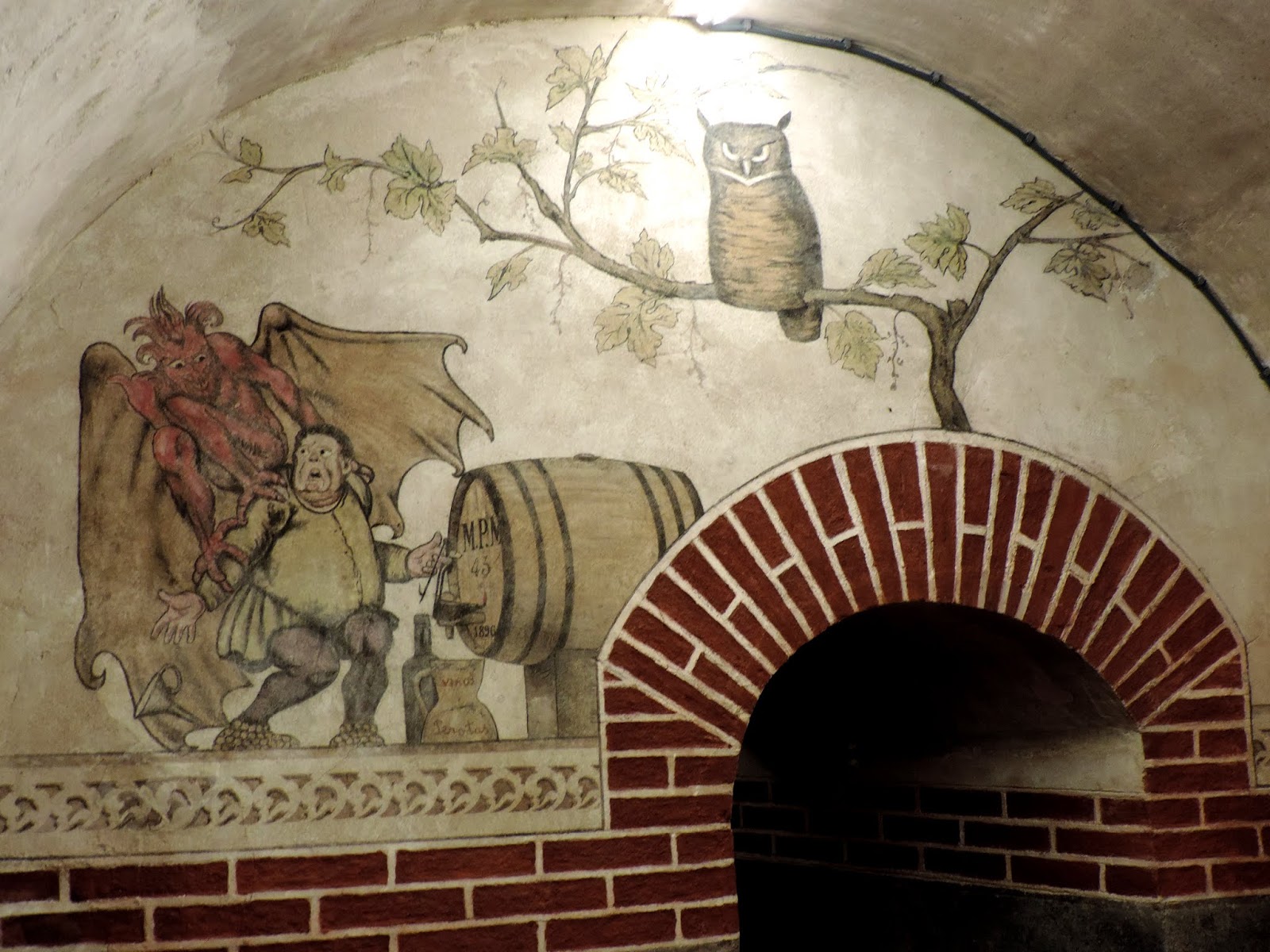 e uma outra sala com pinturas satíricas, onde se reuniam personagens locais para provar o líquido das barricas que repousavam na sala contígua.