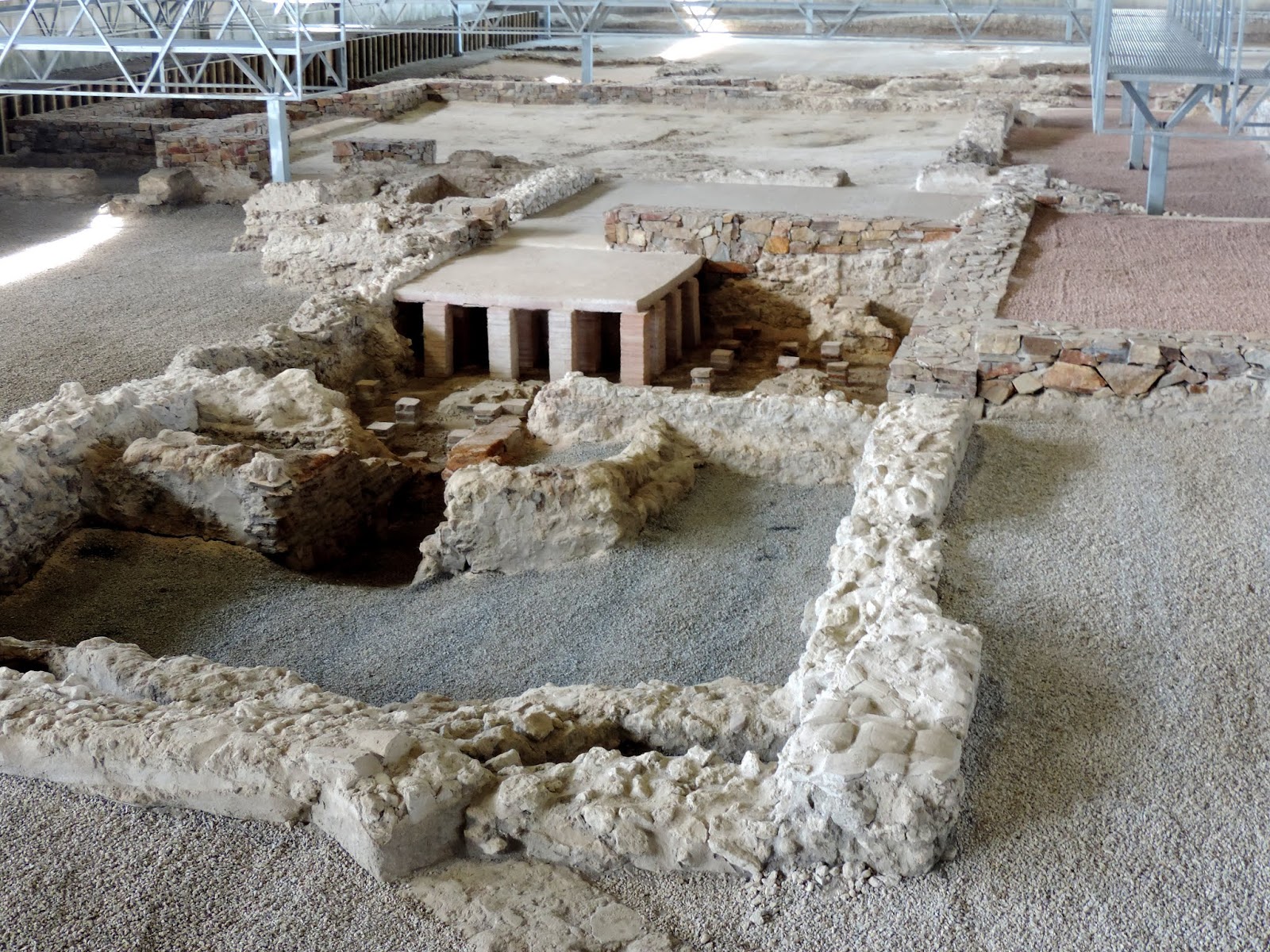 Ao chegar deparámo-nos com um grande pavilhão que foi construído para proteger as escavações.