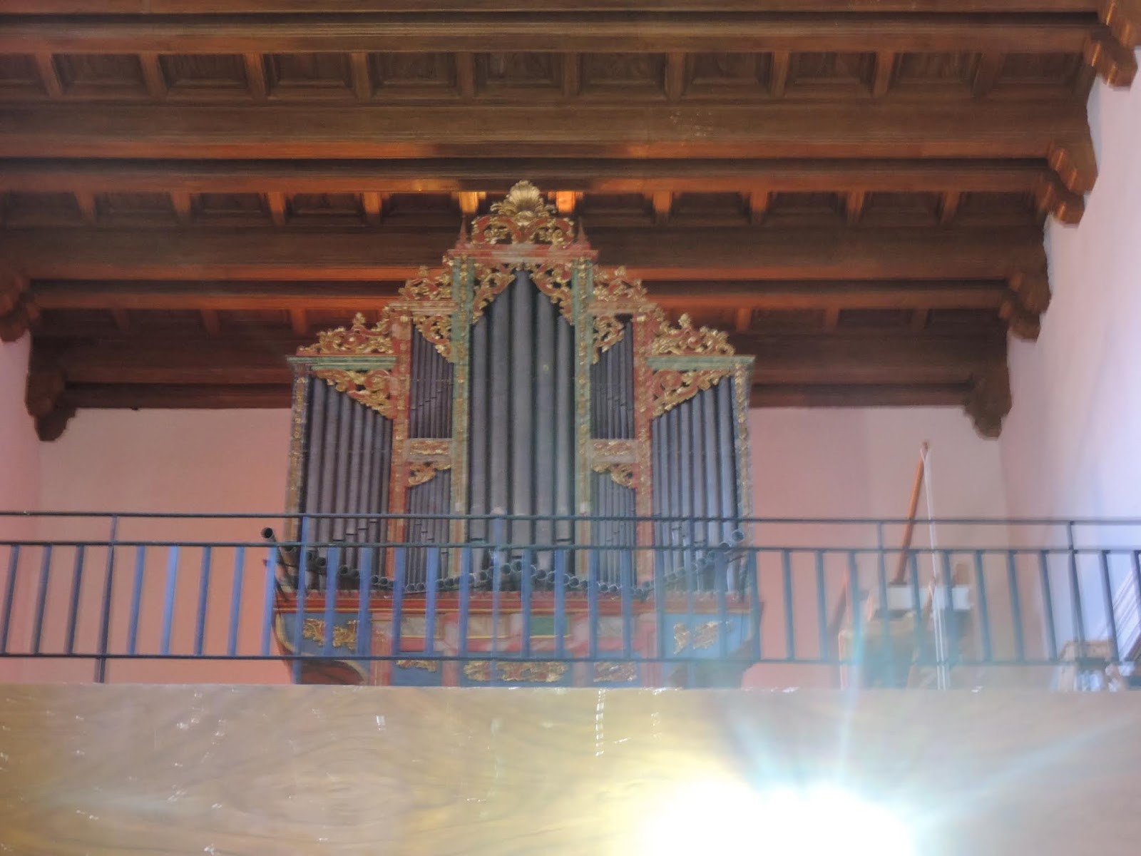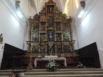 No Retábulo, podemos ver seis estatuetas douradas de santos espanhóis, entre eles Teresa de Jesus.