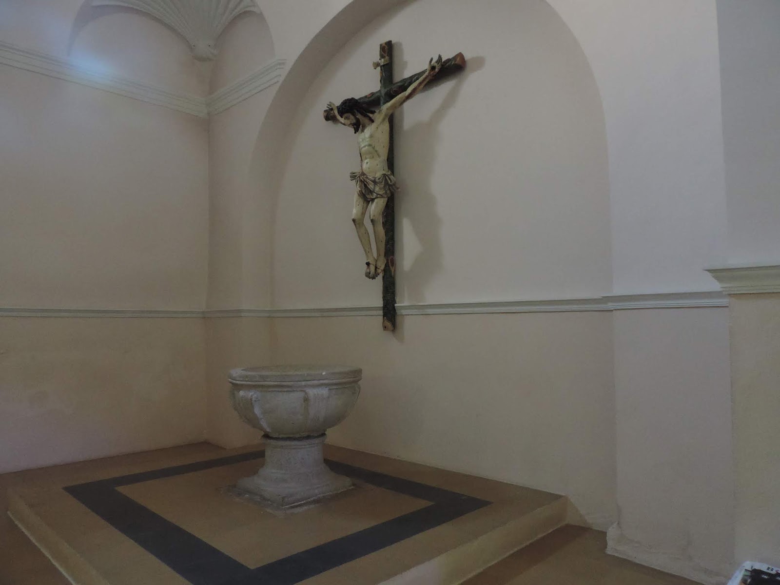 Antes de sair temos a um lado a Sala Baptismal com a respectiva Pia.
