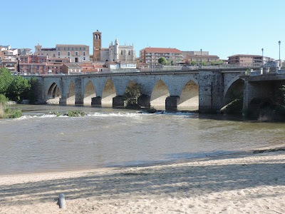 Hoje saímos a pé e fomos visitar a cidade. Logo à saída do Camping temos a vista da Ponte Medieval que atravessa o rio Duero