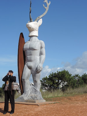 Saímos do Santuário e descemos até ao Forte de S. Miguel Arcanjo. Um pouco abaixo do início da descida, encontra-se uma Escultura do Veado, realizada pela escultora Adália Alberto em mármore e aço, com 6,30 metros de altura e oferecida ao município.