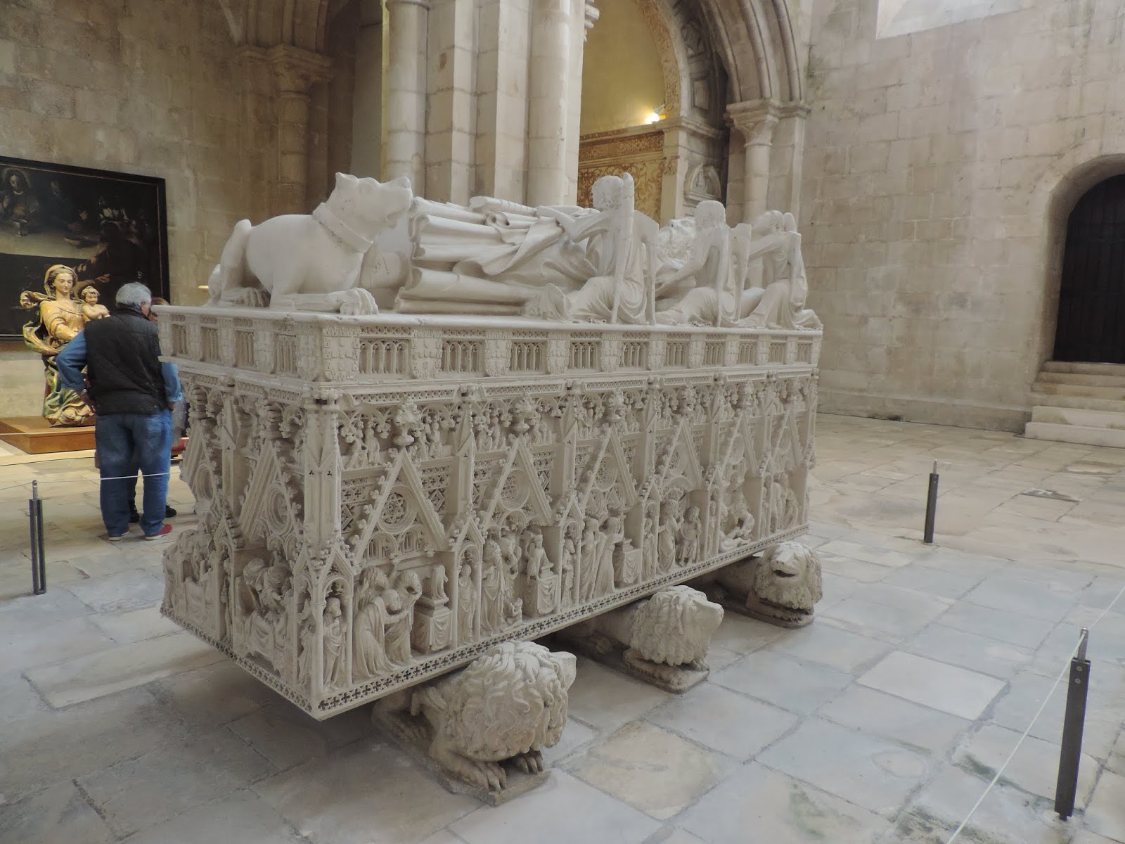 Depois disso fomos visitar o Mosteiro de Santa Maria de Alcobaça, mais conhecido apenas por Mosteiro de Alcobaça. Este Mosteiro começou a ser construído no século XII e é constituído por uma Igreja e por três Claustros, todos eles rodeados por dois andares. Os Claustros mais recentes são rodeados por edifícios de três andares. A fachada principal foi alterada entre 1702 e 1725 e desde aí é ladeada por alas de dois andares
