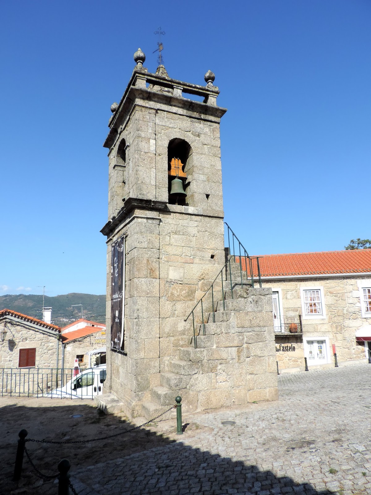 e fomos dar à Torre do Relógio, que está situada no topo da vila e foi edificada em 1830 sobre as ruínas da Igreja Matriz, destruída durante a Guerra Peninsular.