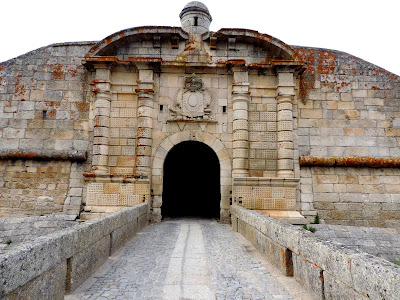 Fomos a seguir passar e transpor a Porta Dupla de Santo António, do século XVII, que apresenta uma cobertura à prova de bomba